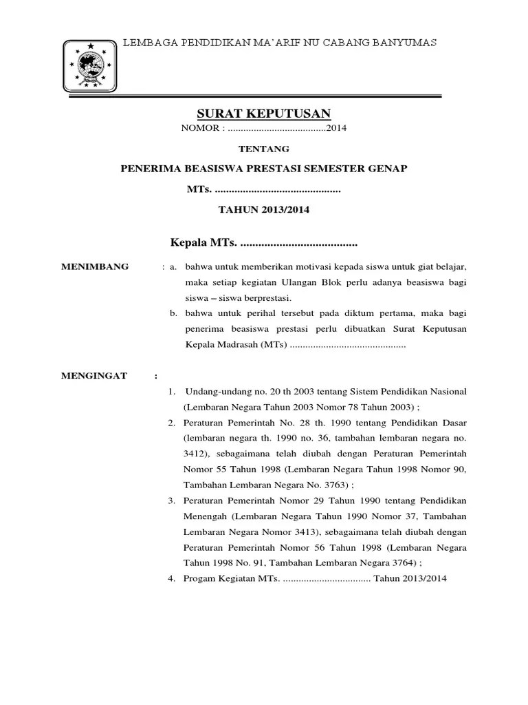 Penyeleksian dan penetapan pemberian beasiswa. Berikut kami lampirkan sk penerima beasiswa peningkatan prestasi akademik. Peraturan bupati tentang perubahan atas peraturan. Keputusan menteri agama republik indonesia nomor : Bupati bojonegoro nomor 34 tahun 2019 tentang.