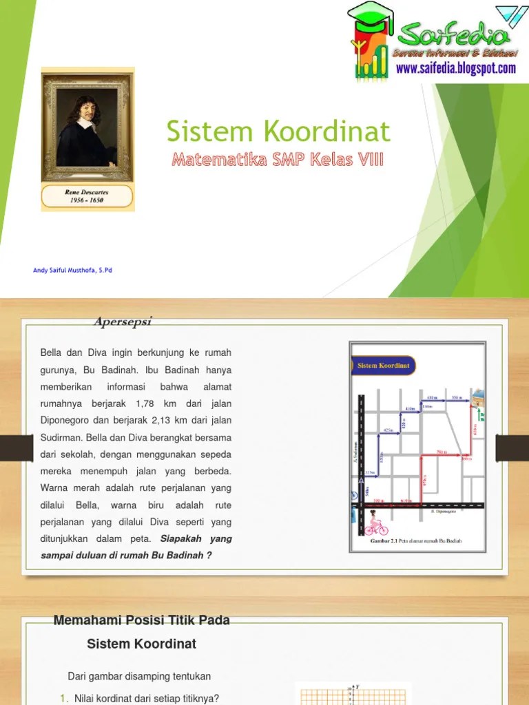 Sistem koordinat kartesius merupakan salah satu materi dasar dalam kajian bidang geometri yang dipelajari pertama kali saat siswa menginjak .